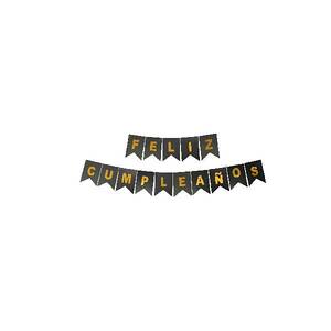 Party Time Banderin Feliz Cumpleaños Negro/Dorado